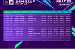 体育资讯5月21日讯 中国足协杯官方公布了足协杯第三轮第2比赛日裁判选派名单。