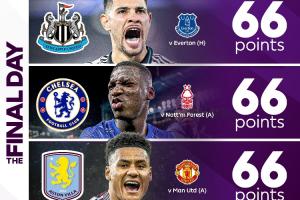 喜鹊积66分净胜球最多,手握主动权。取胜后纽卡能靠净胜球(+22)优势锁定欧冠名额,若平负则需要看切尔西vs森林和维拉的赛果。