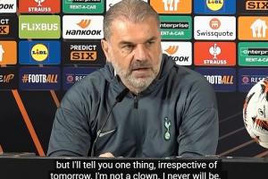 体育资讯05月21日讯 在欧联杯决赛赛前发布会上,热刺主帅波斯特科格鲁面对记者带刺提问很是不满,直言“我不是小丑”。