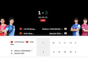 体育资讯05月21日讯 世乒赛混双1/4决赛,世界排名第1的林诗栋/蒯曼对阵世界排名第21的日本组合吉村真晴/大藤沙月,最终林诗栋/蒯曼1-3不敌对手,止步8强。