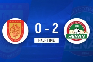 伤停补时4分钟。上半场比赛结束,重庆铜梁龙0-2河南。