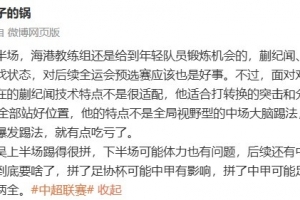 陈华发文谈蒯纪闻:“这个上半场,海港教练组还是给到年轻队员锻炼机会的,蒯纪闻、李新翔得到首发,寻找状态,对后续全运会预选赛应该也是好事。不过,面对对方收缩防线的踢法,现在的蒯纪闻技术特点不是很适配,他适合打转换的突击和分球,一旦对方11个人全部站好位置,他的特点不是全局视野型的中场大脑踢法,更像是局部手术刀的爆发踢法,就有点吃亏了。