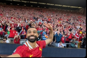体育资讯5月22日讯 利物浦已经提前夺得本赛季英超冠军,第34轮主场5-1大胜热刺是红军提前夺冠的决定战,比赛中萨拉赫进球后与球迷自拍庆祝。在敲定冠军后的几场比赛中,主帅斯洛特使用了一些小将。