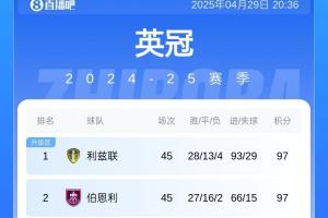 体育资讯04月29日讯 本赛季英冠将在本周六迎来收官,在仅剩1轮的情况下,目前利兹联和伯恩利积分相同,末轮两队将上演隔空争冠大戏。