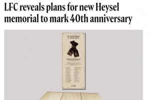 值此40周年之际,利物浦首席执行官霍根与俱乐部大使伊恩-拉什将赴都灵出席尤文图斯新海瑟尔纪念碑「去向彼方」(Verso Altrove)的揭幕仪式。出于对5月29日都灵揭幕仪式的尊重,「永恒纽带」的正式揭幕将延至今夏晚些时候。