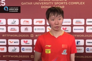 王曼昱:最近和她打过两次,最近一次4比3赢的。对方非常有实力,从今天的对手削球转换为攻球,要尽快去调整自己的状态,以非常饱满的状态去迎接下一场比赛。