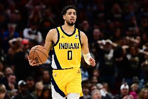 上半场,步行者球星哈利伯顿表现出色,得分和助攻都是队内最高,次节独得10分,在19分钟的时间里,投篮11中6,三分球6中2,拿到14分3篮板6助攻的数据。