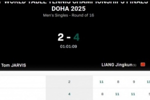 六局比分分别为:8-11,11-8,11-9,5-11,11-2,11-6。整场比赛耗时超过1小时,梁靖崑在2比2后,调整状态连赢2局最终晋级。