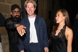 福登、B席和哈兰德也各自携伴侣出席派对,B席和妻子还在把玩着德布劳内的面具,哈兰德和女友则在凌晨1点前乘坐出租车离场。