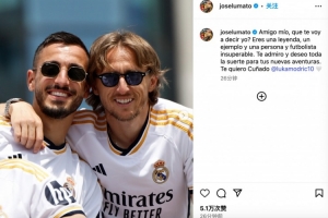 体育资讯5月23日讯 克罗地亚中场莫德里奇将在本赛季结束后离开皇马,他的前队友何塞卢在个人INS上发文,致敬魔笛。