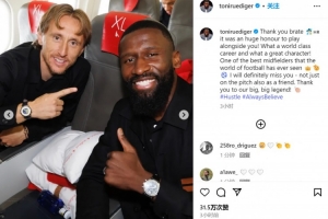 体育资讯5月23日讯 吕迪格发文祝福了莫德里奇,后者即将离队。