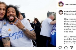 体育资讯5月23日讯 皇马官方宣布莫德里奇世俱杯结束后离队,马塞洛社媒发文,致敬曾经的队友。