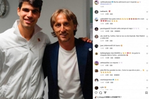作为皇马的忠实粉丝,阿尔卡拉斯晒出两人合照,并配文写道:我非常敬佩你,你是真正的传奇👑。