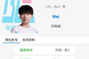 体育资讯5月23日讯 近日韩服排位更新,打野选手Wei以1832分位列韩服第五;