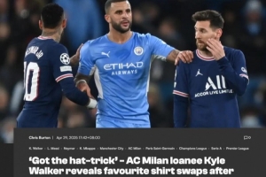 体育资讯4月29日讯 曼城后卫沃克目前租借效力于AC米兰,他在自己的播客上谈到了球衣收藏的话题。