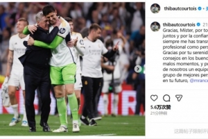 体育资讯5月23日讯 西甲收官战对阵皇家社会,将是安切洛蒂执教皇马的最后一场比赛。赛前,皇马门将库尔图瓦在社交媒体上向这位传奇主帅致敬。