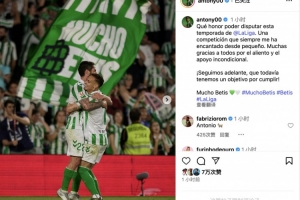 赛后,安东尼更新社交媒体向球迷感谢,并表示永远支持贝蒂斯。