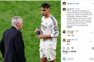 体育资讯5月24日讯 皇马主帅安切洛蒂今夏离任,队内后卫劳尔-阿森西奥社媒发文告别。