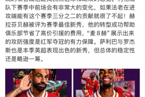 体育资讯5月24日讯 今日,英超官方公布赛季奖项得主,其中萨拉赫当选赛季最佳球员,赫拉芬贝赫当选赛季最佳年轻球员。在奖项公布后,詹俊在社媒发文进行点评。