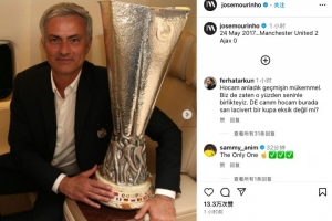 穆帅写道:“2017年5月24日…曼联2-0击败阿贾克斯。”