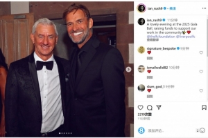 伊恩-拉什与克洛普出席利物浦俱乐部基金会的活动 ,伊恩-拉什社媒晒出与克洛普的合照,并写道:“在2025年晚会中度过美妙夜晚,为支持我们的社区工作筹集资金。”