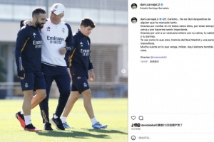 体育资讯5月25日讯 安切洛蒂在收官战中正式在伯纳乌告别皇马,卡瓦哈尔更新社交媒体晒照发文向这位传奇主帅告别。