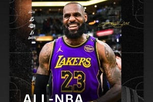 詹姆斯更新个人社交媒体,写道:“40岁再度入选最佳阵容!!此刻简直让我暗自疯狂!坐在这里看着季后赛,满脑子都是这个念头。这份幸福远远超乎我的想象!👑🙏🏾”