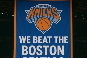 球迷晒出了尼克斯主场麦迪逊升冠军旗的P图,图上写的是“我们在第二轮击败了波士顿凯尔特人”。皮尔斯转发,并配上了3个😂的表情。