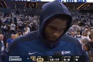 体育资讯5月25日讯 西决G3,森林狼主场143-101大胜雷霆,大比分1-2落后。赛后,爱德华兹接受了采访。