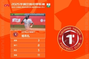 体育资讯5月25日讯 上演帽子戏法的辽宁铁人外援姆本扎当选为了中甲第9轮最佳球员。