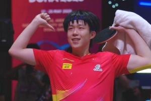 体育资讯5月25日讯 世乒赛男单决赛,王楚钦4-1雨果,获得个人三大赛首冠。
