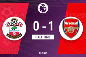 体育资讯5月25日讯 北京时间5月25日23:00,英超第38轮,阿森纳做客圣玛丽球场挑战南安普顿。上半场,梅里诺头球击中横梁,马丁内利单刀打门被扑出,蒂尔尼抢点破门。上半场比赛结束,阿森纳暂时1-0领先南安普顿。
