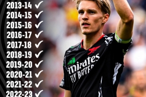 据livescore数据统计,在过去英超十四个赛季的收官战中,阿森纳取得14场胜利。