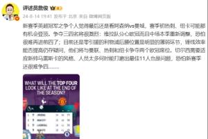 体育资讯05月26日讯 本赛季开季前,著名解说员詹俊老师在社媒对新赛季英超争冠及争四情况表达看法:英超冠军之争还是看枪手vs曼城,利物浦将与曼联、热刺和纽卡争夺两个欧冠席位。