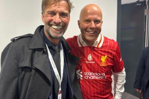 体育资讯5月26日讯 利物浦赢得了本赛季英超冠军,前红军主帅克洛普也到场见证红军捧杯,渣叔在INS上晒出了与利物浦将帅的合照。