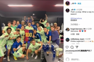 莱万晒出了球队在更衣室庆祝胜利的照片,配文写道;“本赛季圆满收官!多么好的结束方式!”
