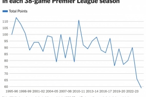 体育资讯5月26日讯 本赛季的英超联赛尘埃落定,三支降级球队总计拿到59分,打破上赛季的纪录(66分),英超38轮赛制时期最少。