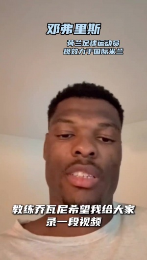 体育资讯05月26日讯 陕西联合官方发布了一段视频,应主帅乔瓦尼的邀请,国米边翼卫邓弗里斯录制了一段视频,以鼓励陕西联合的球员们。