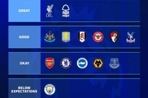良好:纽卡、维拉、富勒姆、布伦特福德、伯恩茅斯、水晶宫