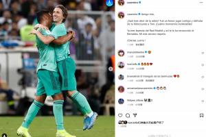 卡塞米罗写道:“我的朋友,关于你的告别,我还能多说什么呢?能与你并肩作战、与你和克罗斯一起享受足球是一种荣誉。我们一起度过了那么多难忘的时刻!”