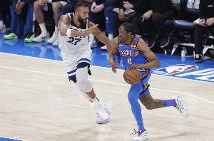 体育资讯5月27日讯 NBA季后赛西部决赛G4,雷霆128-126险胜森林狼。