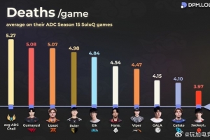 体育资讯5月27日讯 数据网站Esports Charts统计,S15赛季ADC选手排位场均死亡次数前十:Gumayusi场均5.08次排名第一,JackeyLove场均3.97次排名第十。