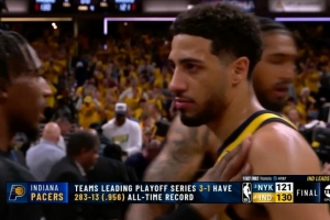体育资讯5月28日讯 东决G4,步行者130-121力克尼克斯,大比分3-1领先。