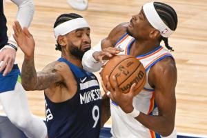 在昨日森林狼不敌雷霆的最后时刻,亚历山大出界球被球迷接到,第一时间,技术台的计时员给了0.1秒,慢放显示球迷接到球时是有0.6秒,但最终,裁判因为无权看回放,所以只能靠商议回表到了0.3秒。