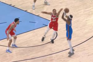 亚历山大三不沾投出界,雷霆认为贝恩犯规了,直接挑战出界球
