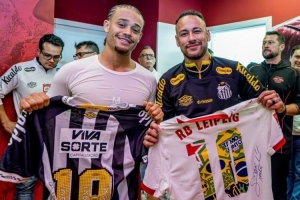 莱比锡攻击手哈维-西蒙斯此役梅开二度,赛后他与内马尔合影留念,并互换球衣。