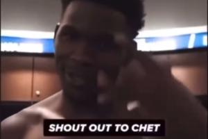 霍姆格伦更新ins,晒爱德华兹在更衣室视频,并自行配音道:“为切特(霍姆格伦)欢呼,欢迎回家宝贝😂”(Shout out to Chet welcome home baby)