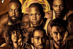 雅虎体育官方晒图(杜兰特、威少、哈登老三少/亚历山大、杰伦威、霍姆格伦新三少)并评论道:“俄克拉荷马雷霆13年的总决赛荒终于结束 了😤。”