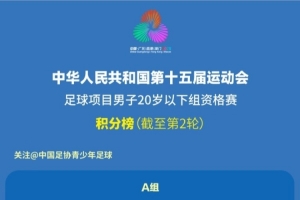 中华人民共和国第十五届运动会足球项目 男子20岁以下组资格赛积分榜(截至第2轮)