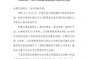 体育资讯04月30日讯 中足联官方公布中乙联赛处罚决定,由于此前泰安天贶3-0兰州陇原竞技比赛中球童翻过广告牌进场翻滚事件,山东赛区被通报批评,并罚款3万元。此外,兰州球员刘综扬(非染红球员)因为撞击球童,被停赛4场,罚款2万元。